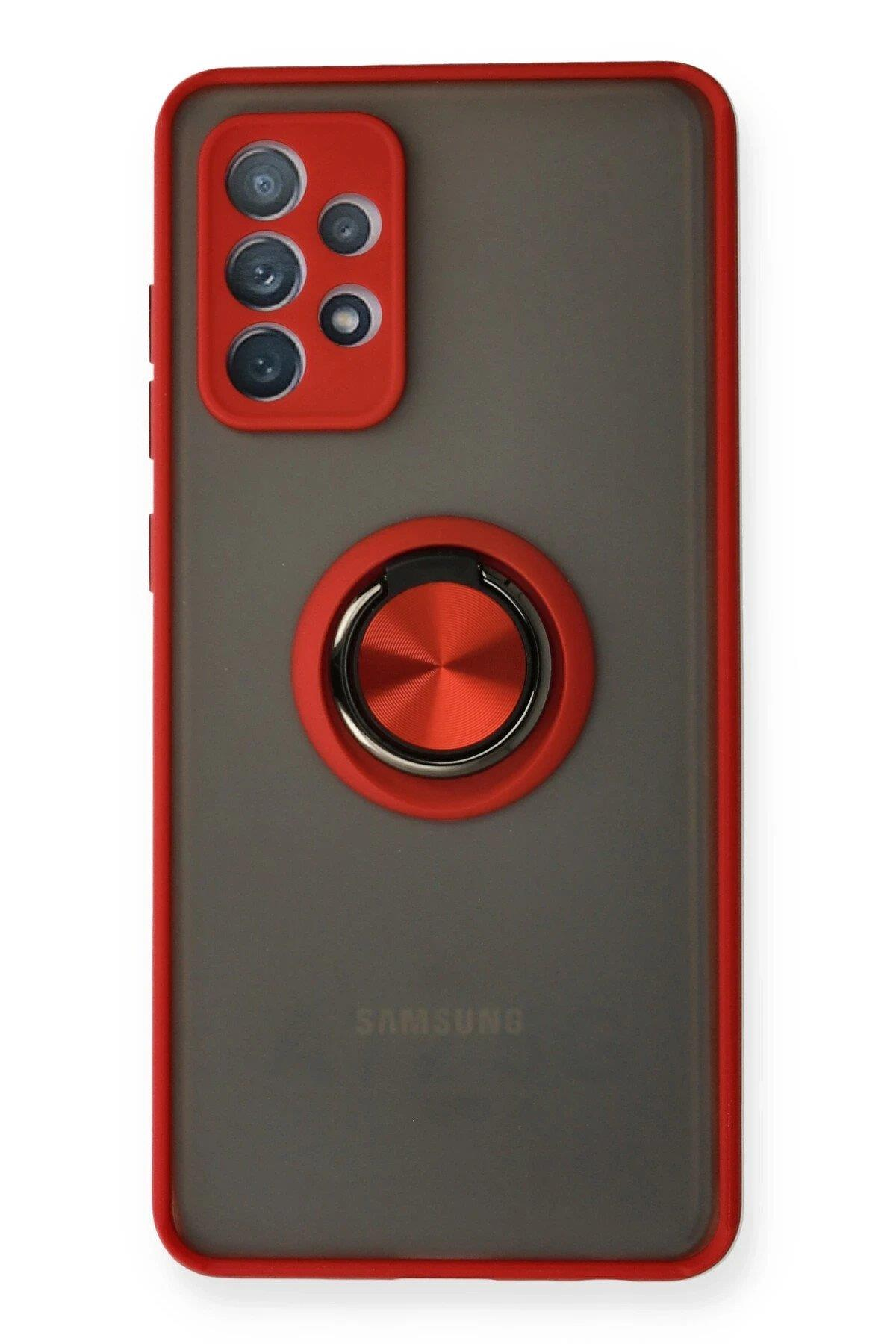 Newface Samsung Galaxy A32 Kılıf Montreal Yüzüklü Silikon Kapak - Kırmızı